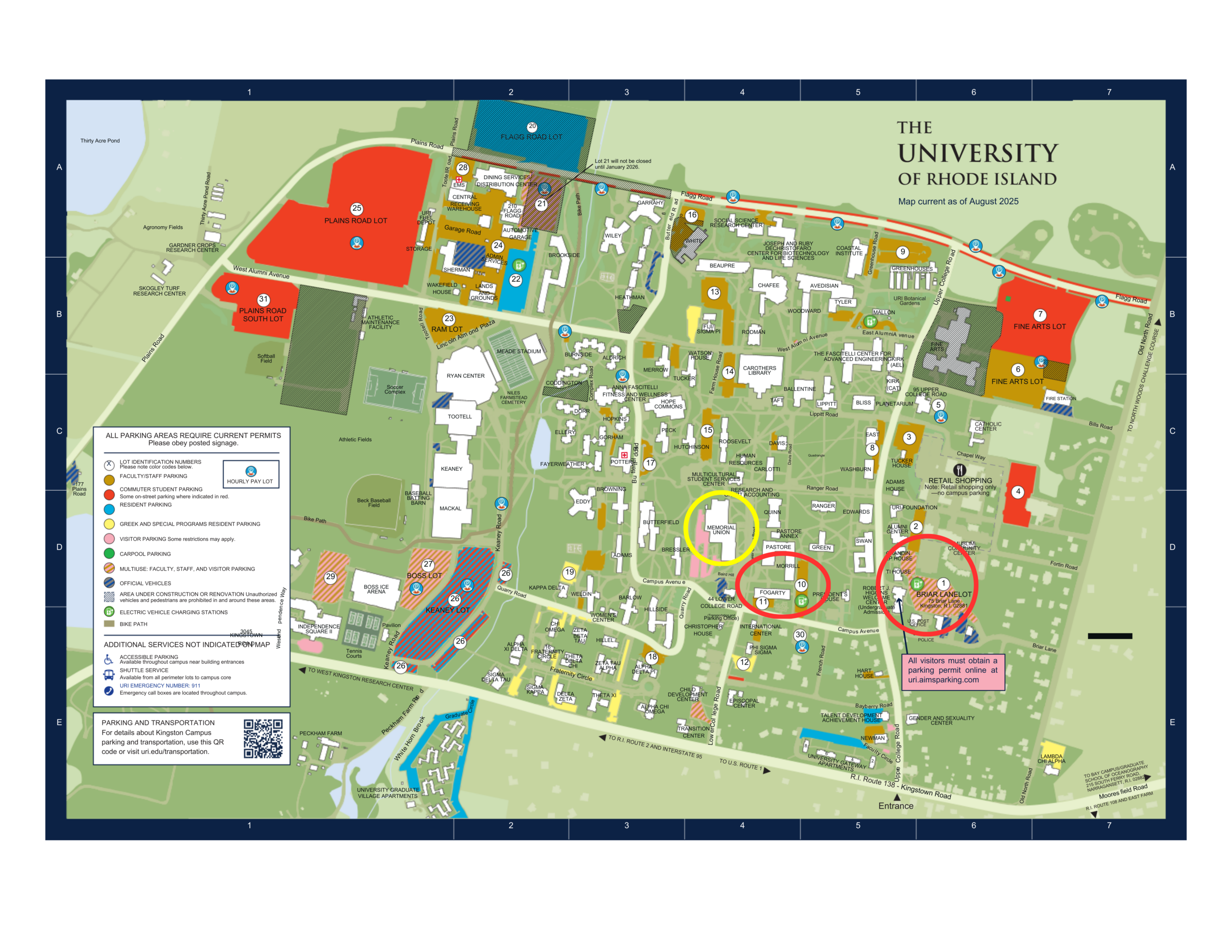 GPS Address for Parking: 75 Briar Lane, Kingston, RI (Robert J. Higgins Welcome Center).